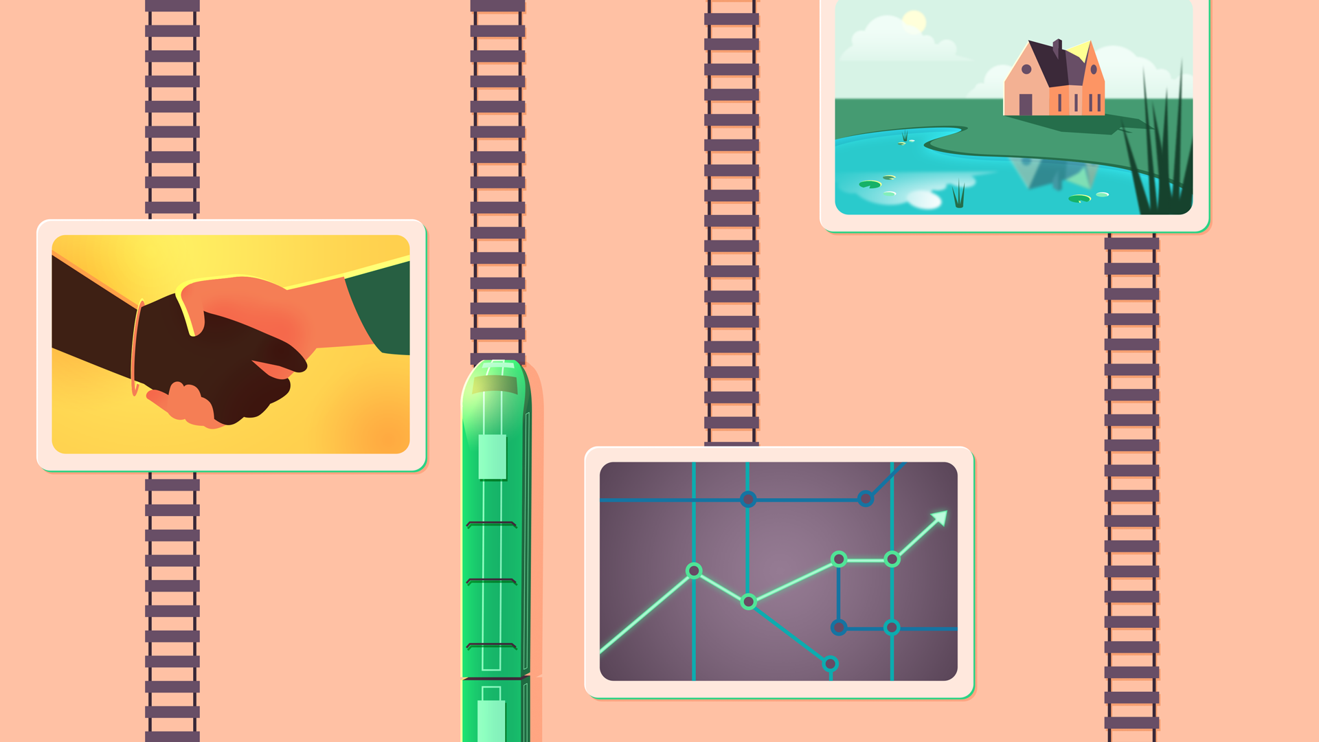 Some style frames I've done for an explainer animation about railway in Europe.