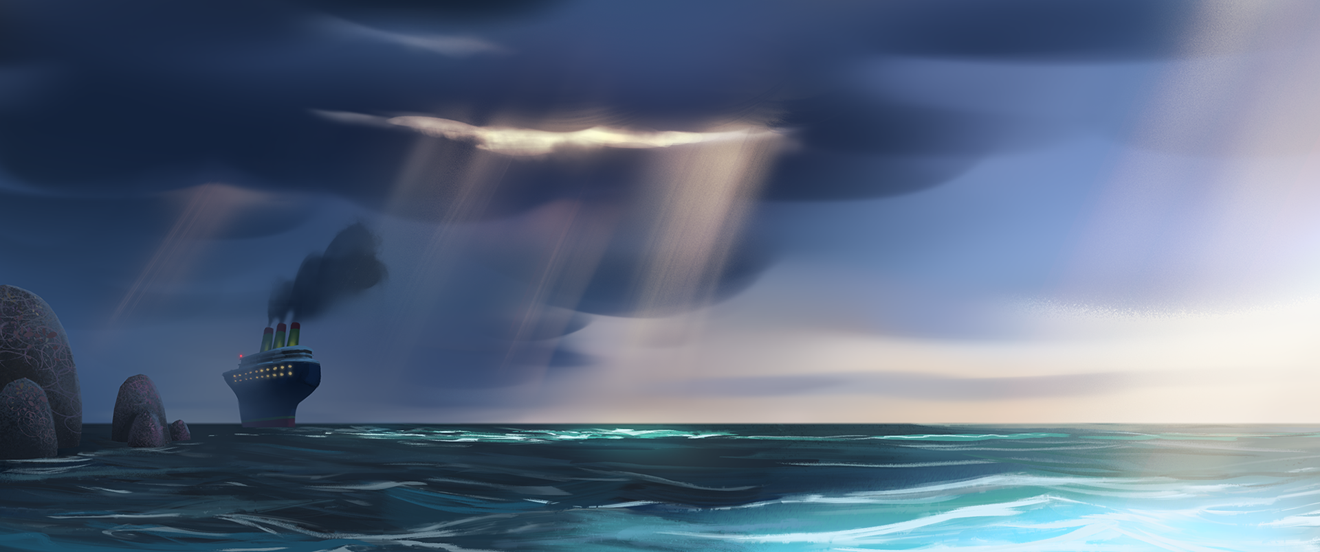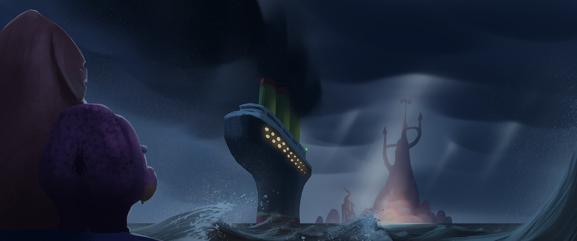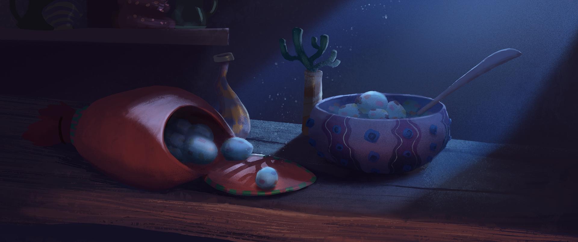 Here are some of the paintings I've done, over the animatic or 3D renders with primitive 3D shapes of the characters and set.